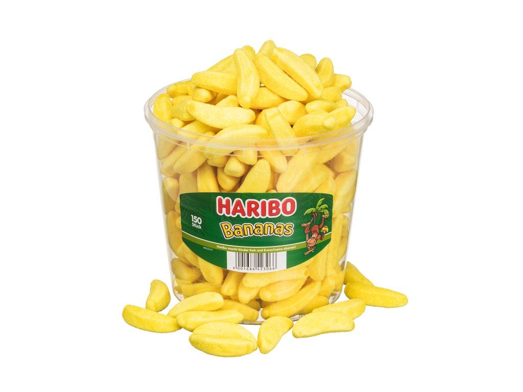 Egzotyczne przeżycie z Haribo Bananas! Te banany nie tylko wyglądają jak prawdziwe banany, ale też smakują jak one! Delikatna pianka o smaku bananowym pokryta cukrową polewą i wspaniałym aromatem, który poczujesz już po otwarciu puszki. Te duże, prawie 6 cm długie banany to jeden z najlepszych produktów Haribo!