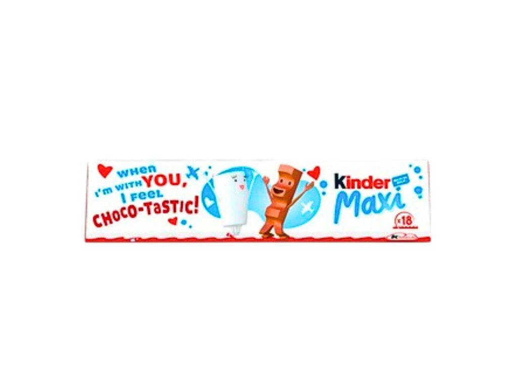 Wyjątkowa przyjemność w większym formacie – to Kinder Maxi! Ten pyszny batonik z delikatnym mlecznym nadzieniem, oblany najlepszą czekoladową polewą, nie pozostawi po sobie żadnych słodyczy. Teraz w praktycznym, wartościowym opakowaniu zawierającym 18 pojedynczo pakowanych dziecięcych batoników maxi.