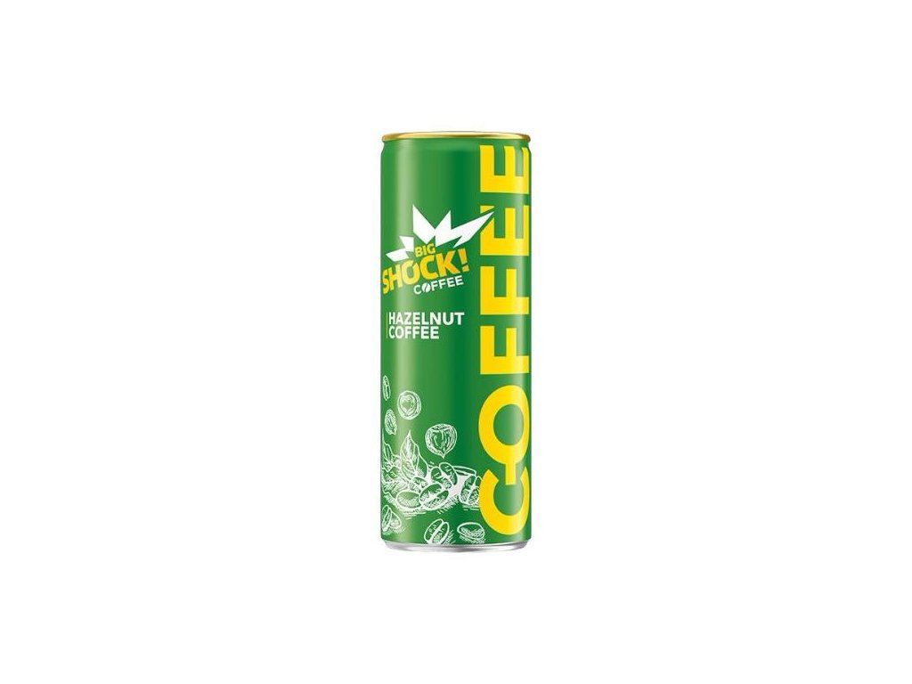 Big Shock! Hazelnut Coffee to energetyczny napój kawowy, który łączy w sobie pyszny smak ORZECHÓW LASKOWYCH z kawą i zapewnia szybkie orzeźwienie dzięki zawartości kofeiny. Napój ten jest idealny dla miłośników kawy poszukujących czegoś nowego i orzeźwiającego.