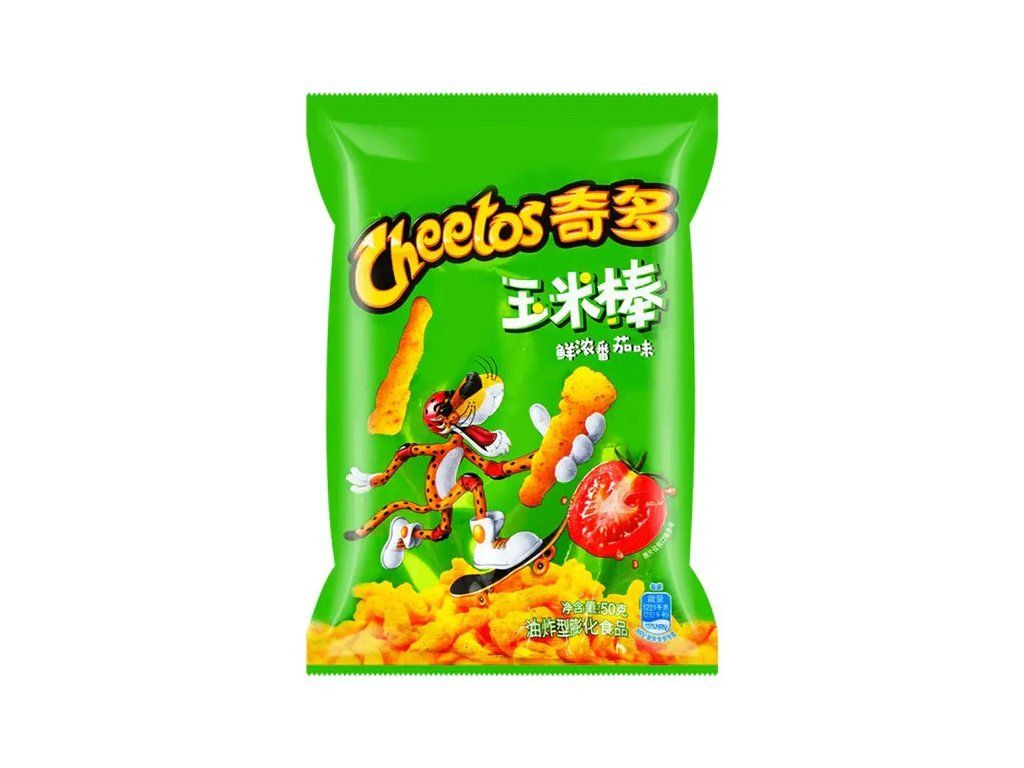 Cheetos Tomato Flavor (Čínská verze) jsou jedinečné kukuřičné lupínky, které vás překvapí svou neobvyklou a lahodnou rajčatovou příchutí. Tento produkt, oblíbený v Číně, nabízí zajímavou kombinaci klasické křupavosti Cheetos s bohatou chutí sladkých a lehce kyselých rajčat.