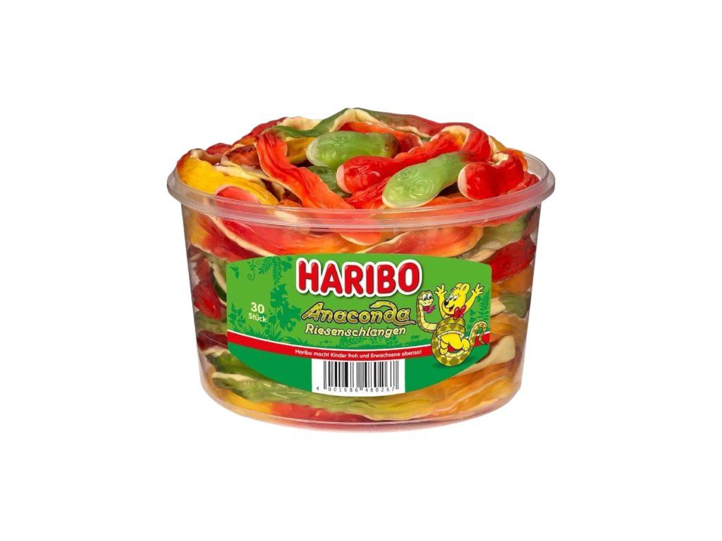 Haribo Anaconda naprawdę oferuje długoterminową przyjemność dzięki swoim formatom XXL. Te gigantyczne węże o długości 35 cm i wadze 45 g robią szczególne wrażenie. Haribo Anaconda to idealny wybór dla miłośników owocowych żelek w zabawnych kształtach.